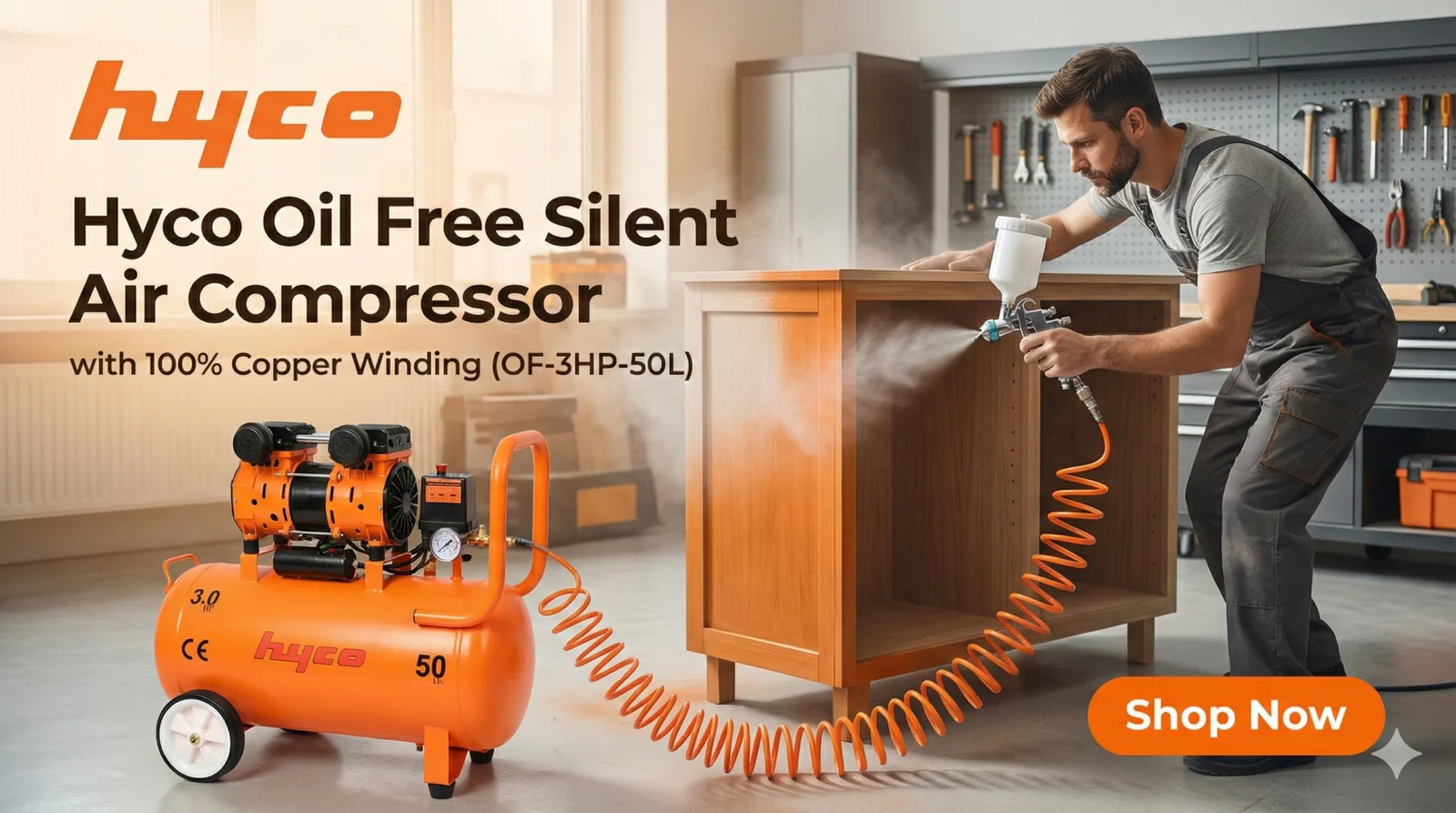 Hyco Oil Free Silent Air Compressor with 100% Copper Winding (OF-3HP-50L)