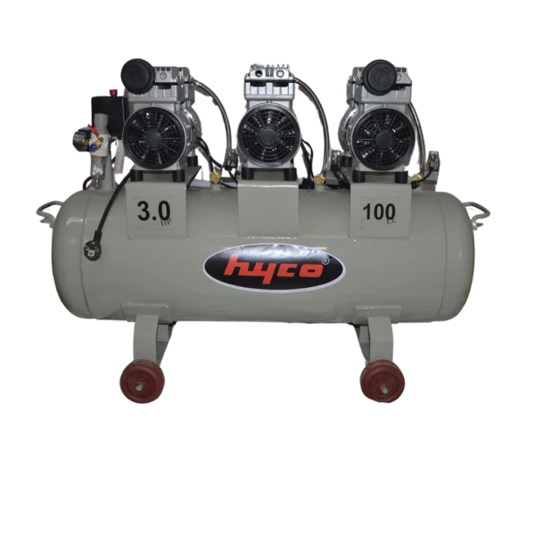 HYCO Industrial Oil Free Air Compressor, 3 HP, 100L Tank, Oil-Free, Triple Motor, 100% Copper Winding