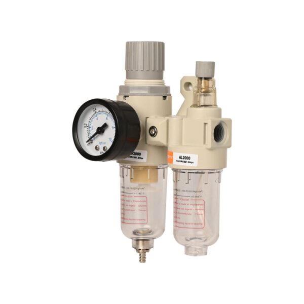 HYCO BSP Pneumatic FRL Unit (Air Filter + Regulator + Lubricator) with Metal Guard And Pressure Gauge Air (1/4″ (AC 2010-02) WITHOUT GUARD)