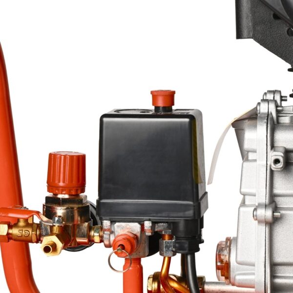 - Power : 3 HP, Cylinder : 48X1 mm, Speed : 2800 r/min, Pressure : 8 Bar, Weight : 30 Kg, Color – Orange