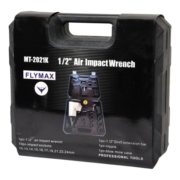 About this item Torque: 350 nm Bolt size (in the box): 9,10,11,12, 13, 14, 17, 19, 22, 24 mm Spindle square drive: 1/2 inch, weight – 2 kg Air inlet: 1/4 inch…..Recommended for Cars (all models)
