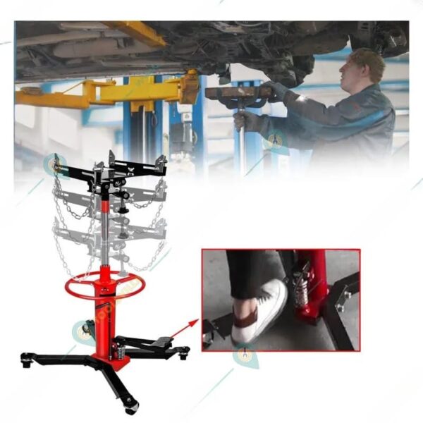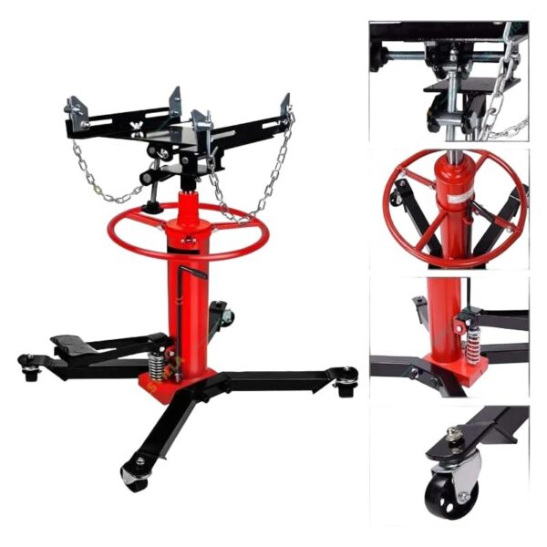 HYCO Heavy Duty Transmission Jack Product Type : Hydraulic Transmission Jack Capacity : 0.5 Ton Minimum Height : 850 mm Maximum Height : 1800 mm Base Size : 62 x 79 mm Width Of Bracket : 120-340 mm Length Of Bracket : 200-355 mm Wheel : 4.2″ (10.6 cm) Packing Size : 79 x 46 x 27 cm Weight : 46 Kg