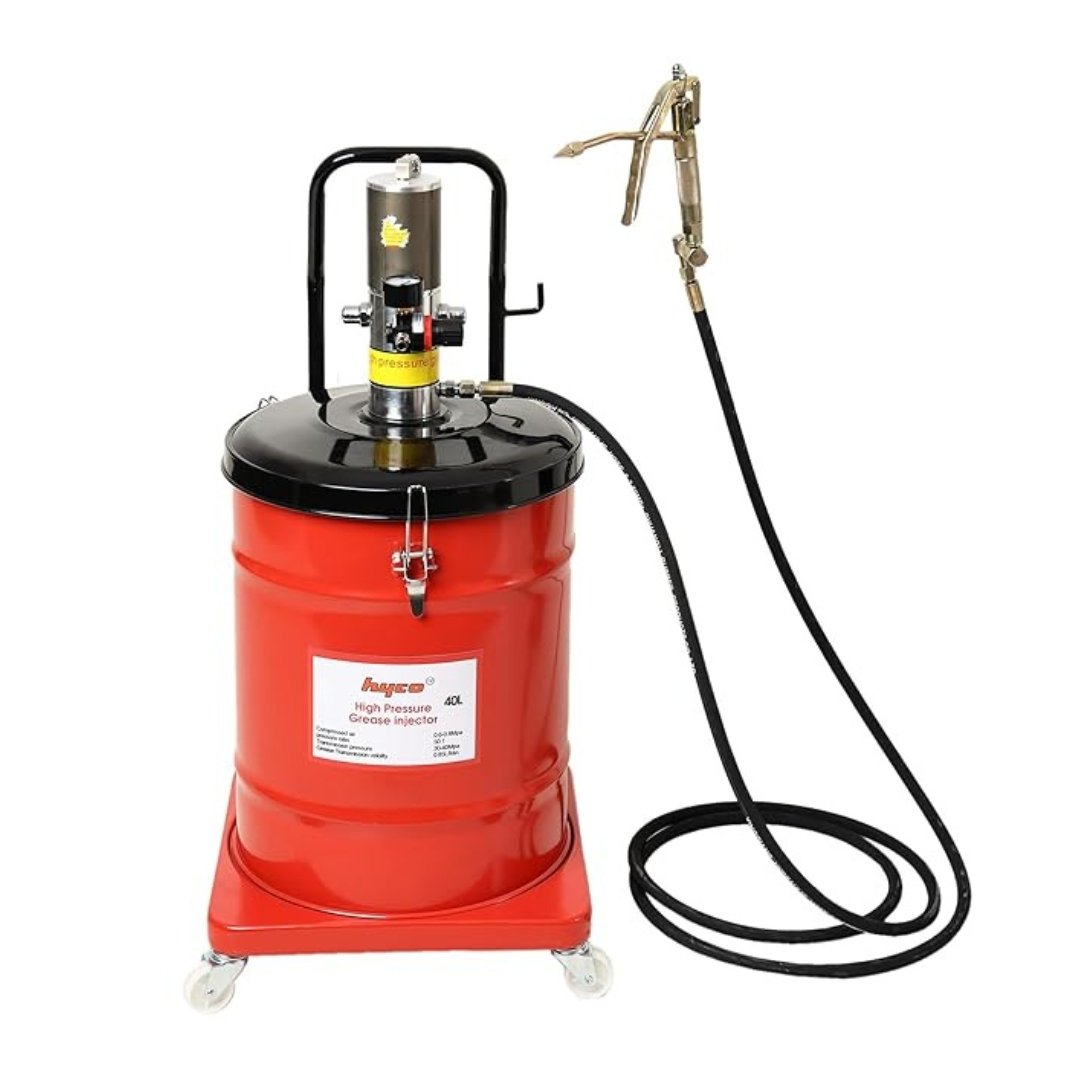 HYCO High Pressure Pnuematic Grease Gun with 50:1 Ratio, Air Operated Bucket, Hose, Swivel Gun and Stainless Steel Fuel Pump (40KG)
