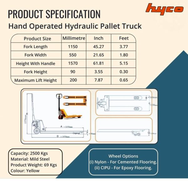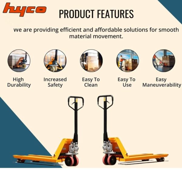 UNSPSC Code 24101500 (Industrial trucks) Manufacturer Hyco Packer HYCO Importer HYCO Item Weight 60 kg Generic Name Pallet Truck Best Sellers Rank #17,987 in Industrial & Scientific ()