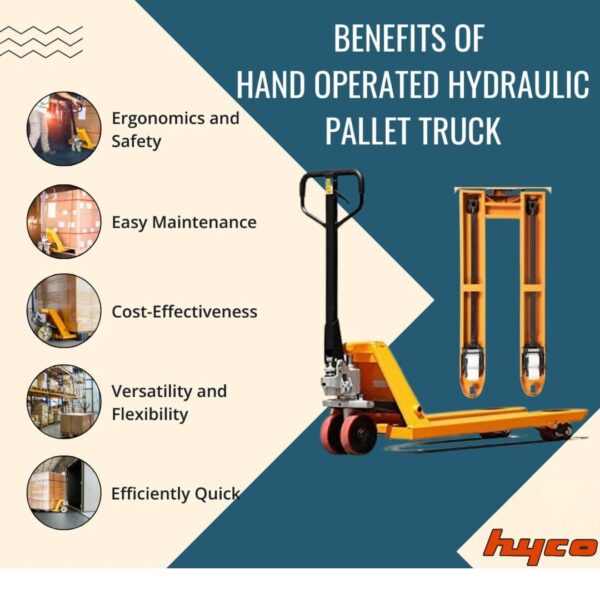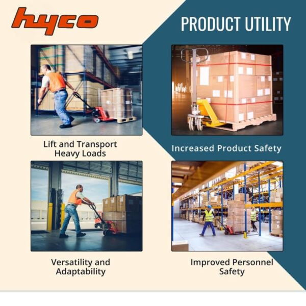 Hyco’s pallet truck is a versatile and robust material handling solution for warehouses, factories, and other industrial settings. This durable truck is designed to efficiently transport heavy loads on pallets, making it an indispensable tool for streamlining operations. With its sturdy construction and ergonomic design, this pallet truck ensures safe and efficient load handling. The hydraulic pump system allows for smooth lifting and lowering of loads, while the large, polyurethane wheels provide excellent manoeuvrability and stability. Whether you need to move goods within a facility or load and unload trucks, this pallet truck from Hyco is a reliable choice for maximising productivity and minimising strain on your workforce.