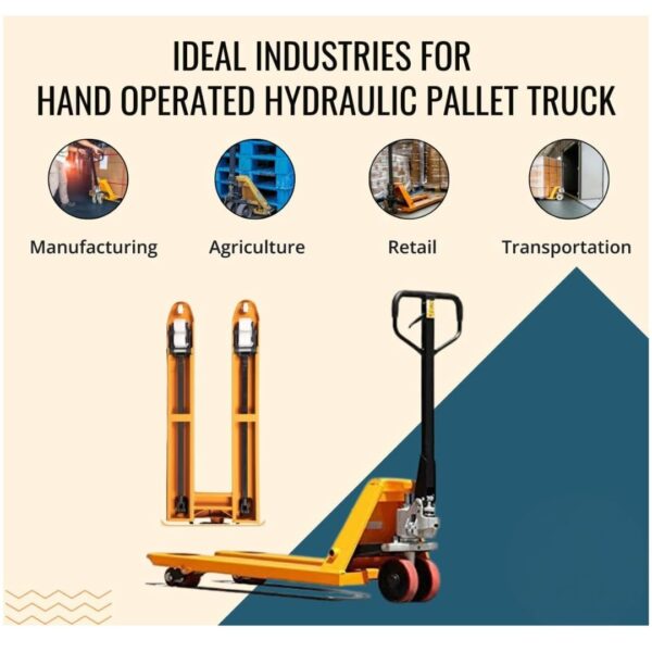 About this item Ergonomic Design: This pallet truck features an ergonomically designed handle for comfortable and efficient lifting and moving of heavy loads. Robust Construction: Built with durable steel components, this pallet truck can withstand the rigours of industrial use and heavy-duty applications. Manoeuvrability: The compact size and swivelling wheels allow for easy manoeuvrability in tight spaces and narrow aisles. Load Capacity: With a lifting capacity of up to 3000 kg, this pallet truck can handle a wide range of loads with ease. Low-Profile Forks: The low-profile forks facilitate seamless pallet entry and exit, making loading and unloading operations smoother and more efficient.