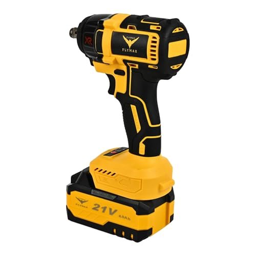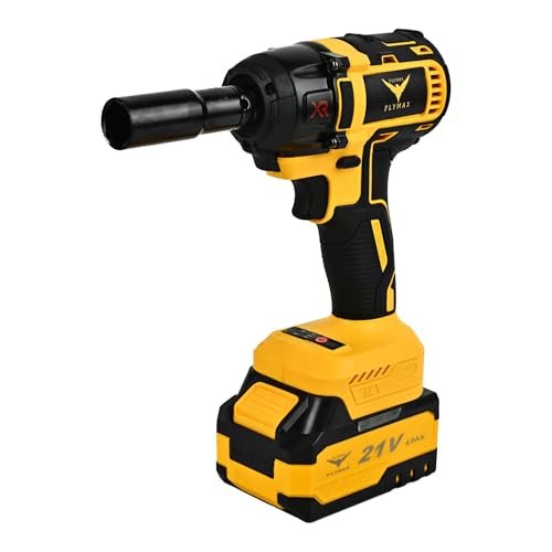 HYCO LABEL FLYMAX Cordless Impact Wrench, 21V, 350 Nm Torque, 4.0Ah Batteries, 1/2-inch Drive with LED Light and Accessories Kit Made in Taiwan