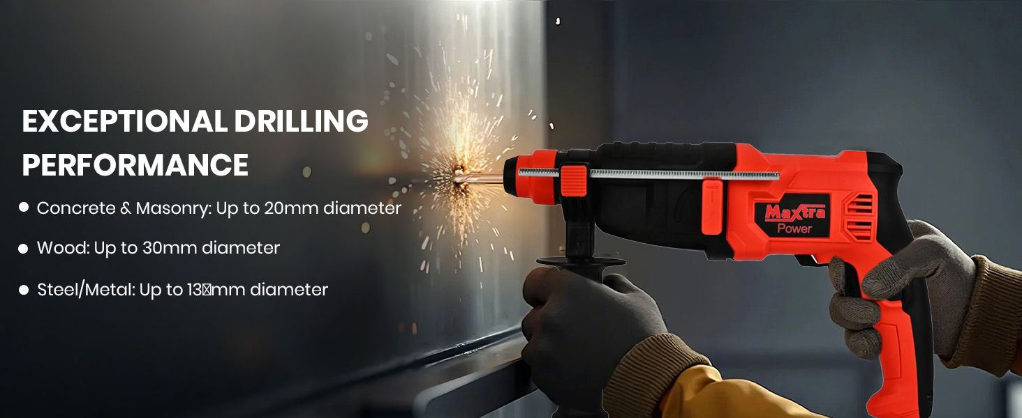 - POWERFUL PERFORMANCE: 800W rotary hammer drill with 3 drill bits included for concrete, masonry, and wood applications