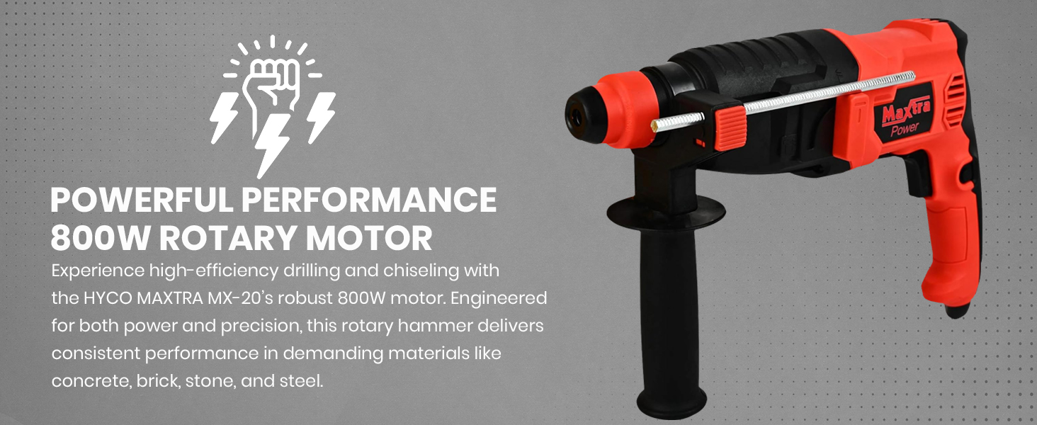HYCO MAXTRA MX-20 Rotary Hammer Drill Kit with 3 Drill Bits, Carrying Case, 800W, Red and Black German technology, Taiwan made