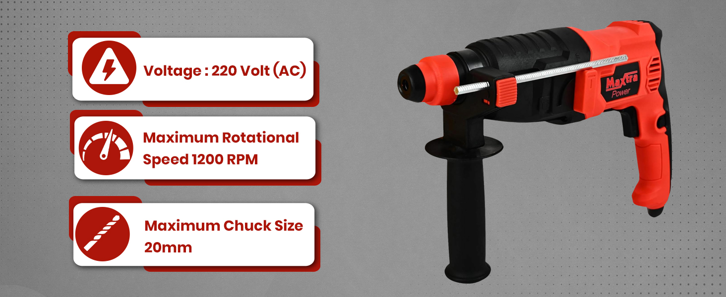 Be the first to review “HYCO MAXTRA MX-20 Rotary Hammer Drill Kit with 3 Drill Bits, Carrying Case, 800W, Red and Black German technology, Taiwan made” Cancel reply